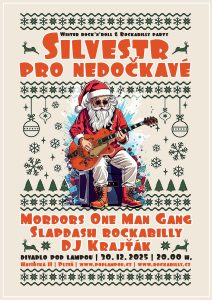 Silvestr pro nedočkavé po několika letech obnoven! Rockabilly večírek kde během dvaceti let zahrály špičky žánru z domova i zahraničí. Přijďte hodit bokem, hodit do sebe pár panáků, pozdravit se s kamarádi a především poslechnout kapely které trčí navzdory věkům na scéně jako přibité: The Slapdash a Mordors v současné době Mordors Oneman gang s dvěma vypečenými hosty. Komu bude toto málo, může naslouchat vinylům DJe Krajťáka. Legedární mejdan jede dál!